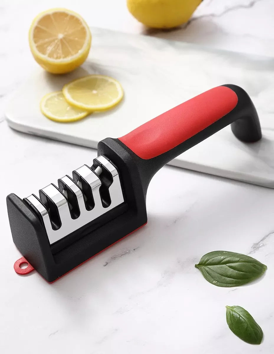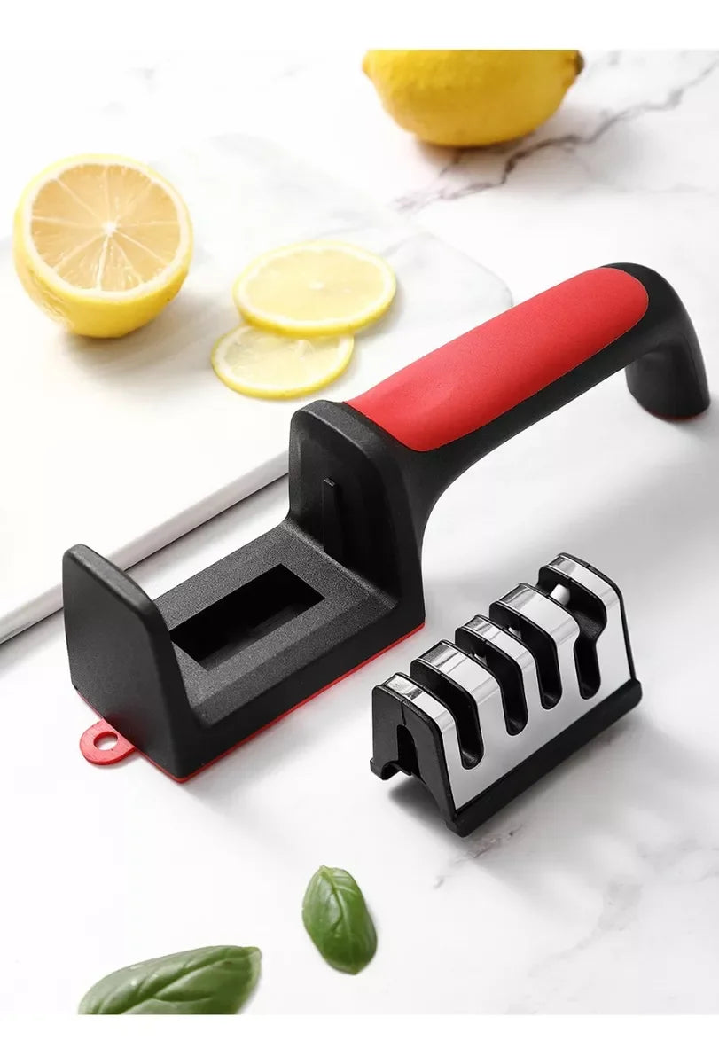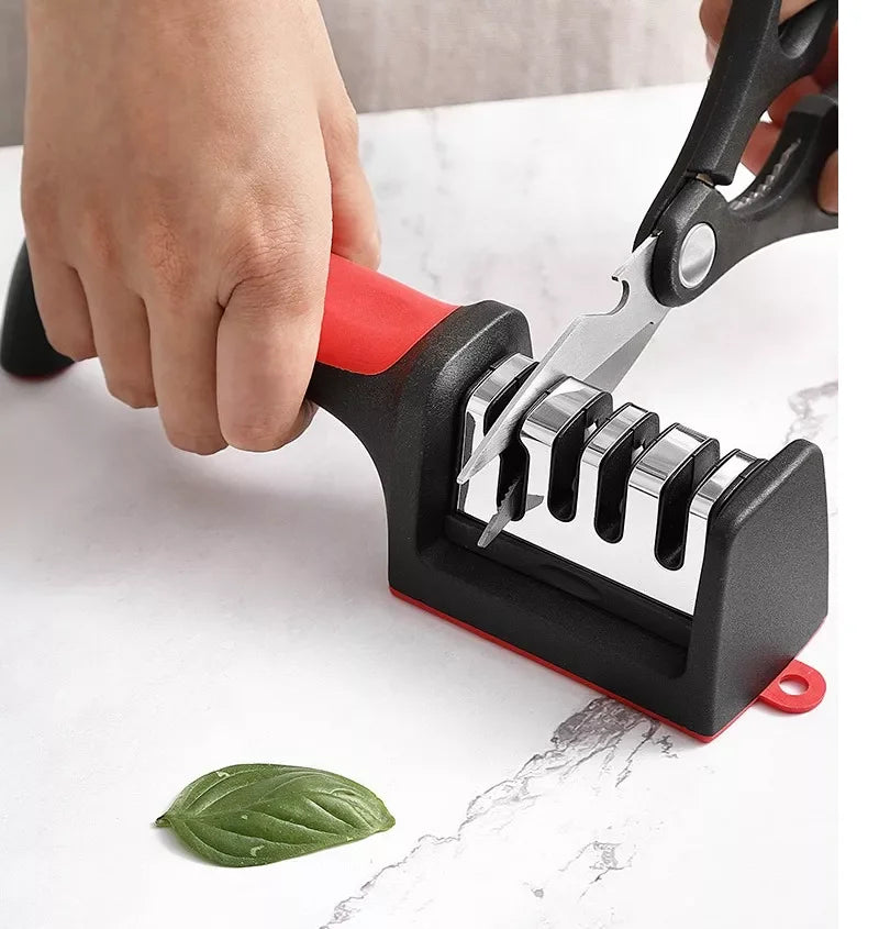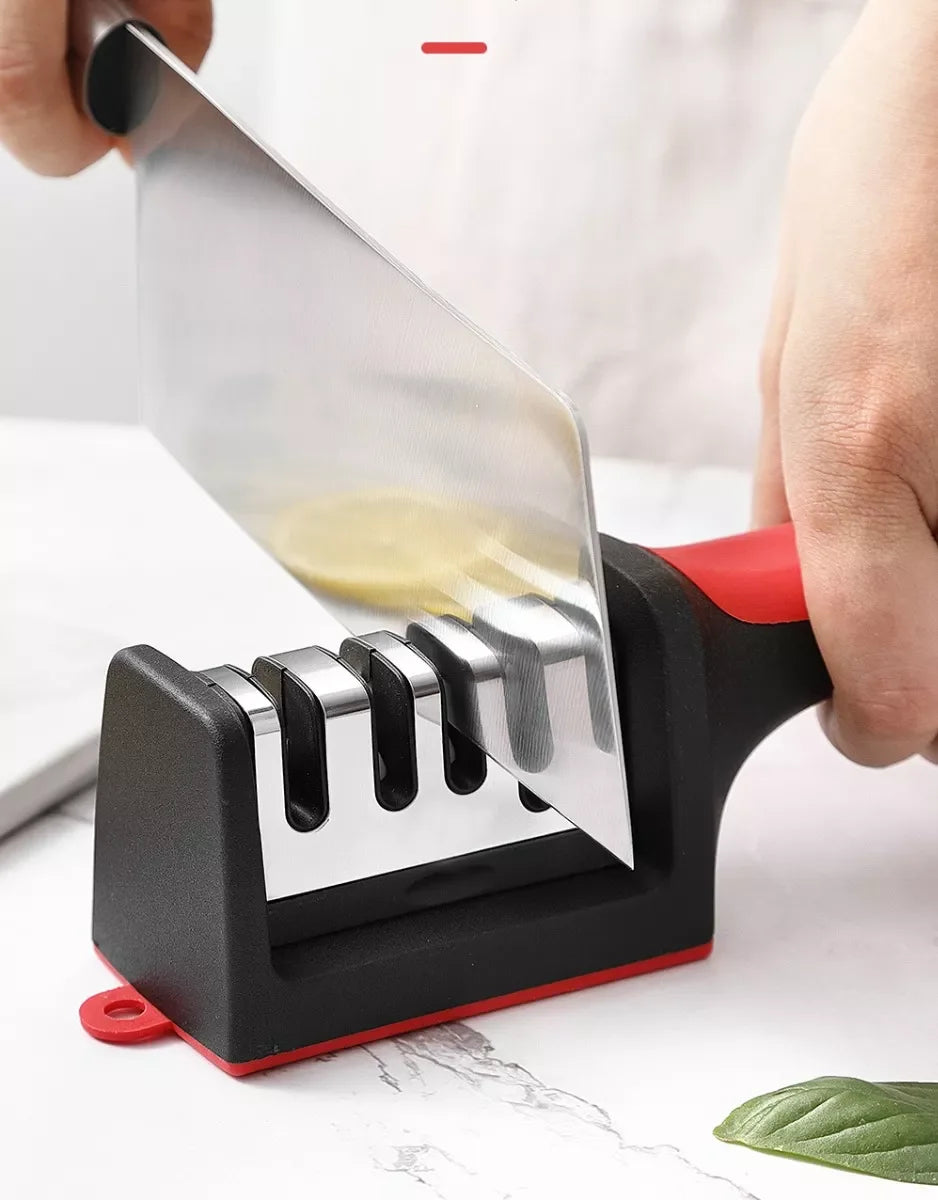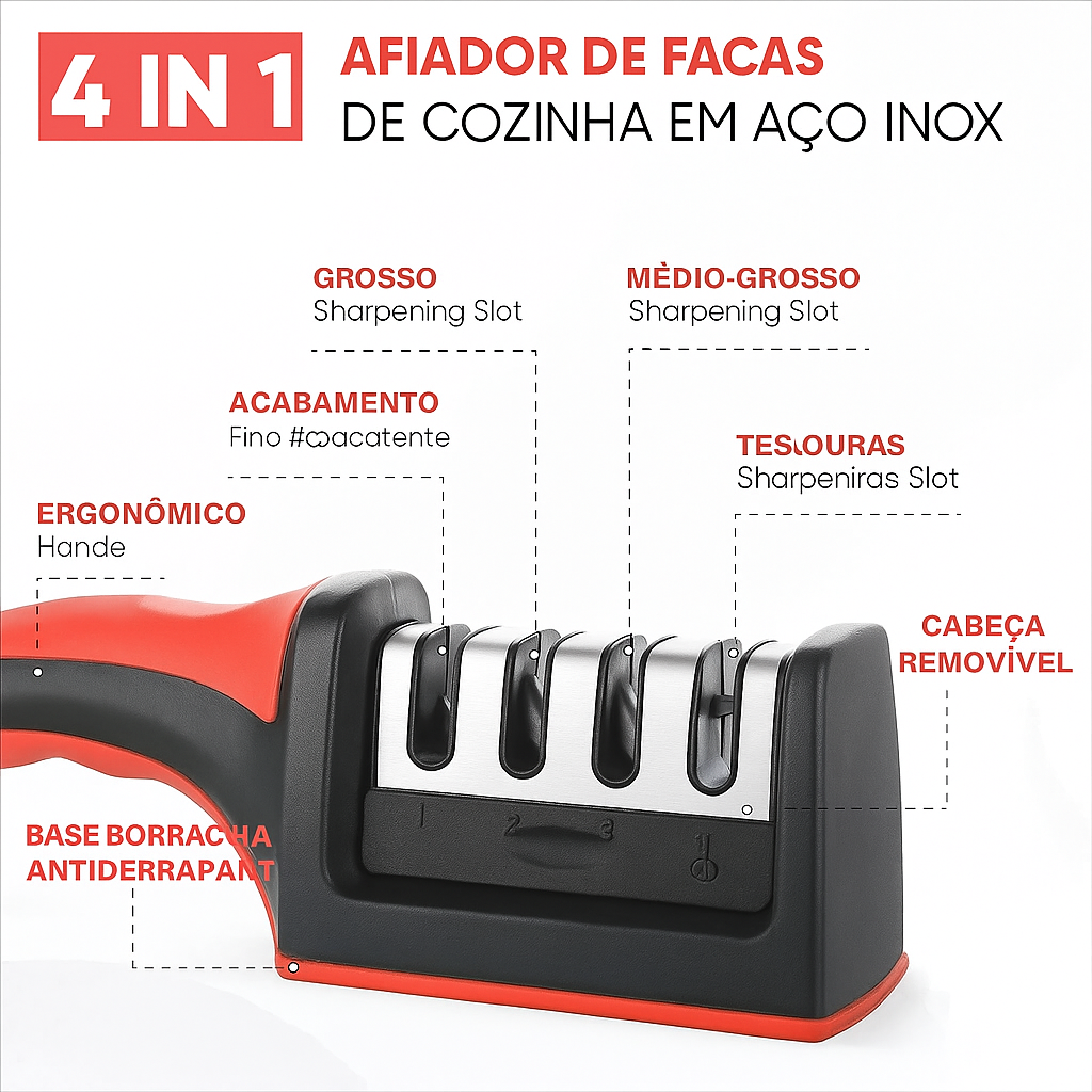 Afiador de Facas Profissional 4 em 1 é prático, seguro e devolve o fio perfeito das suas facas — com rapidez e sem esforço!