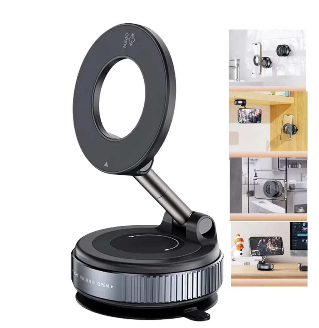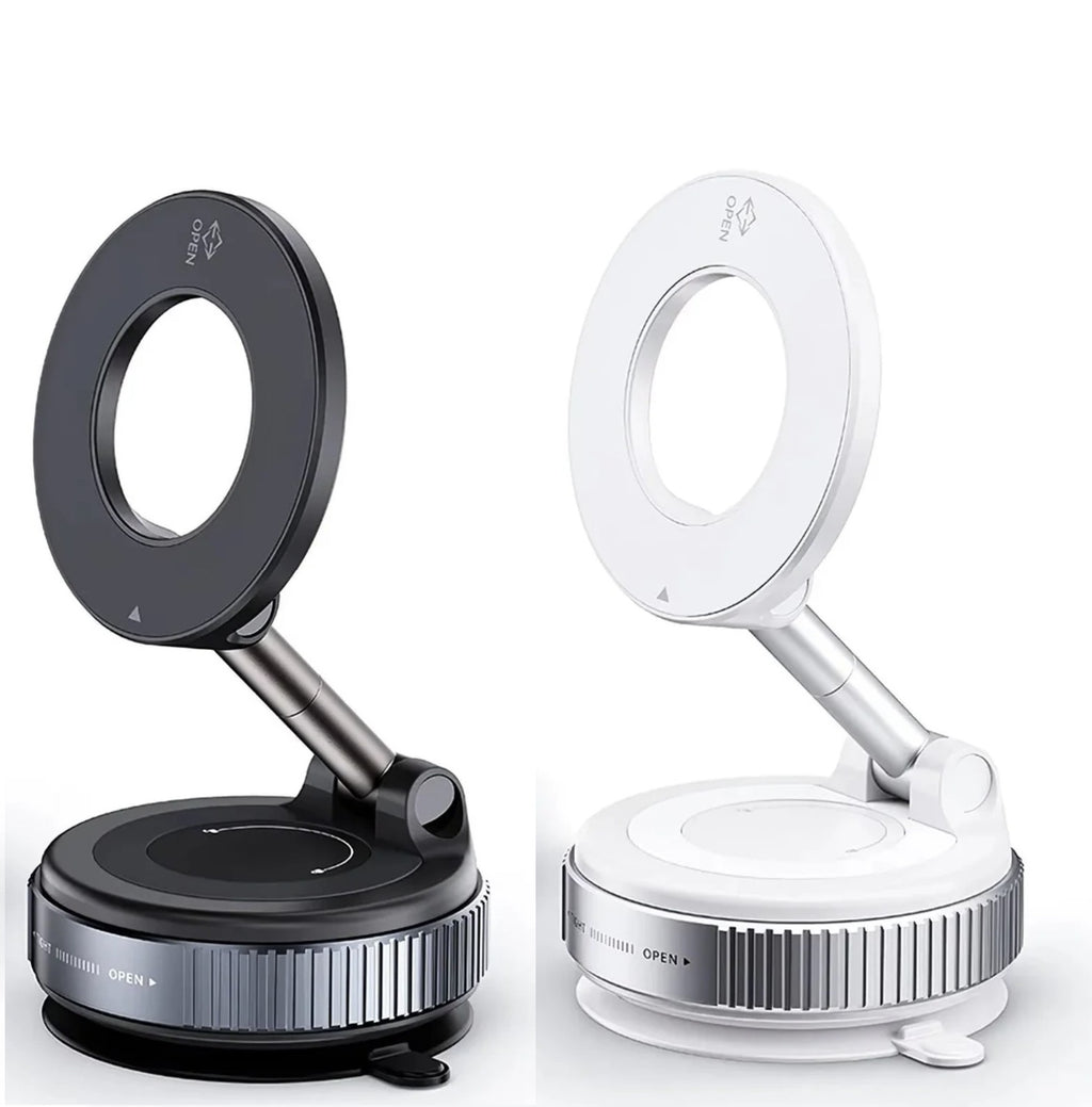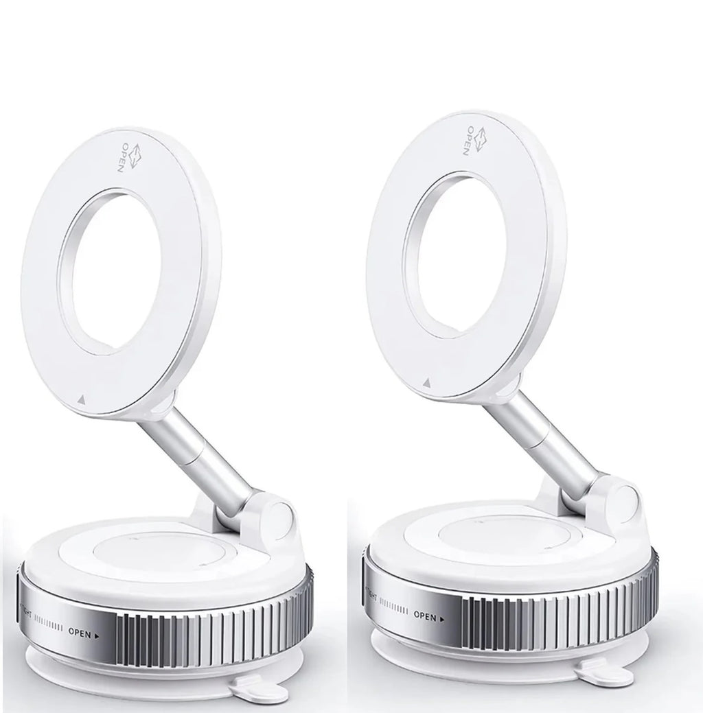 ✅ Base com ventosa a vácuo: fixação em qualquer superfície lisa.